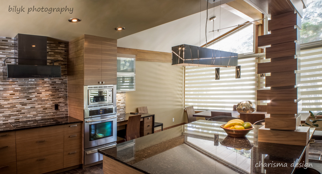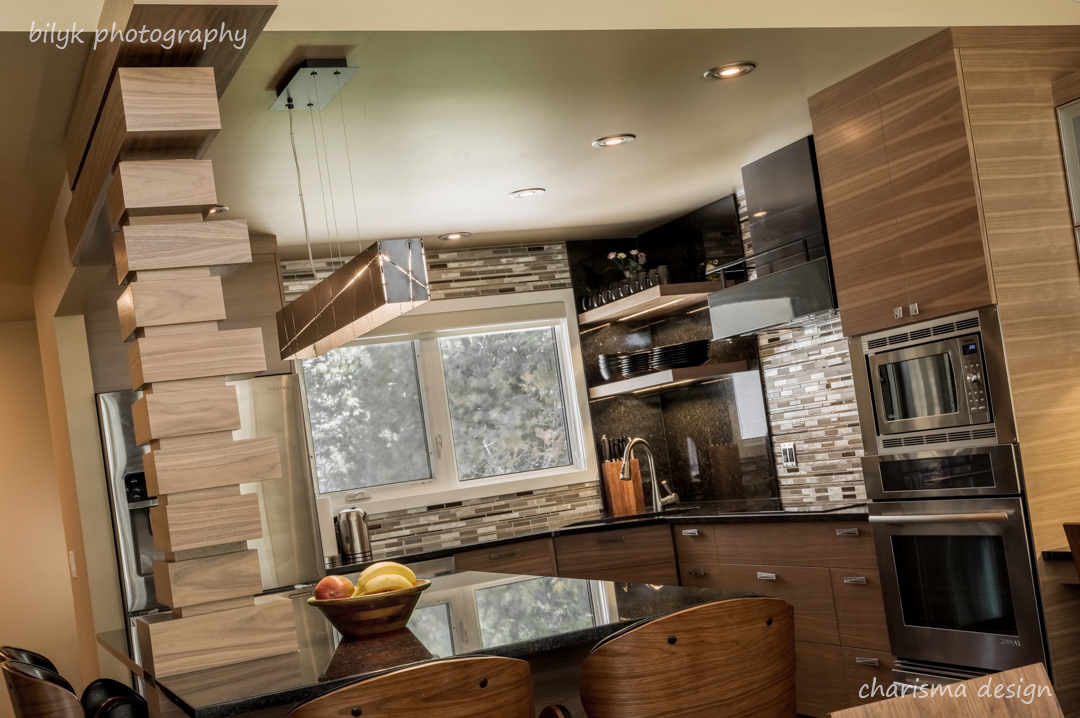 Complete gut & rebuild of a kitchen. A 70's bungalow in desperate need of some character. Removing a wall to open up the kitchen & added a rich palette of materials. Walnut, dark cork, raw steel, stainless & granite.