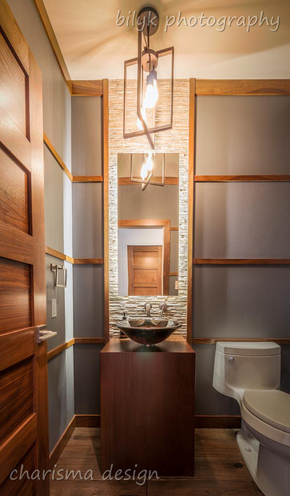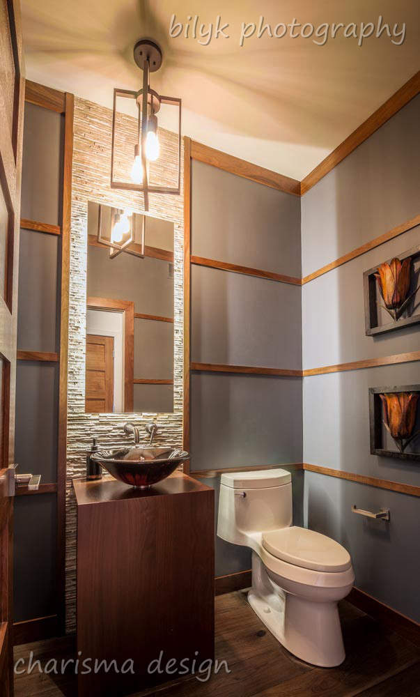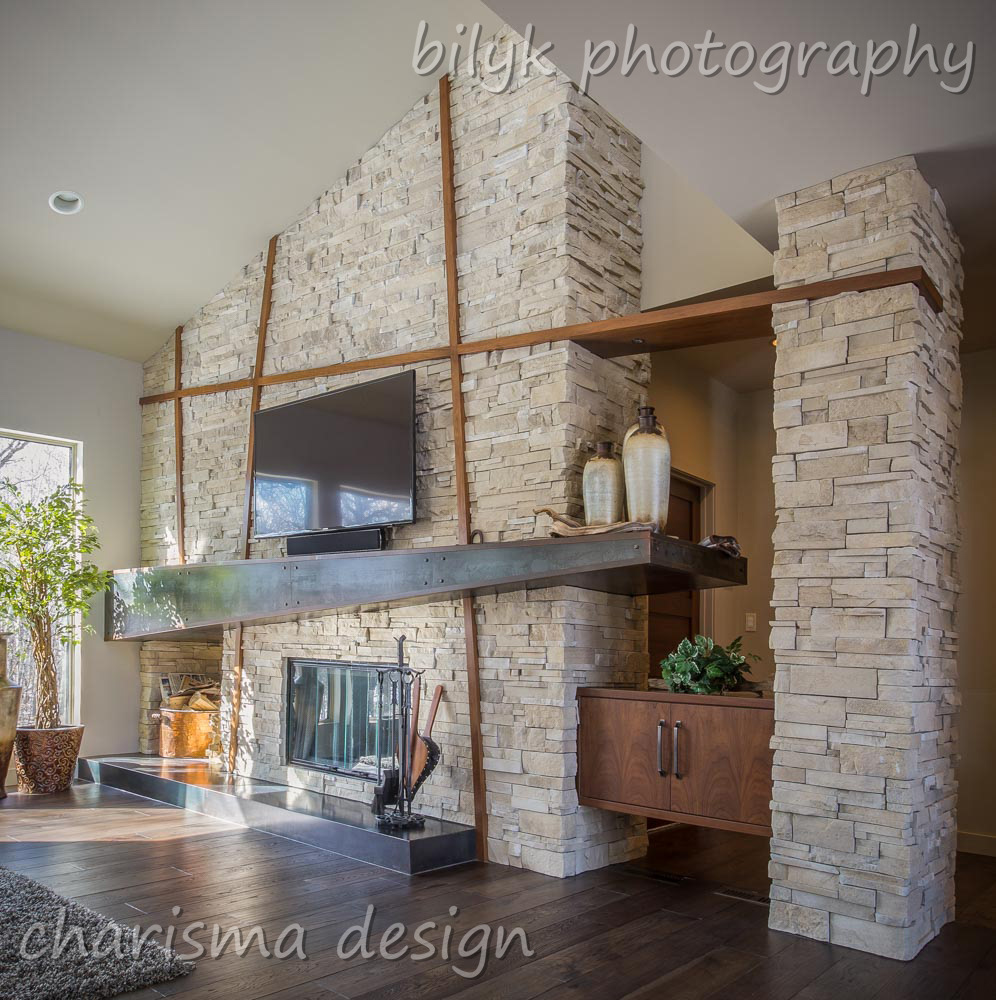 New show home outside Winnipeg. Rustic modern detailing, a combination of raw, character rich materials with modern lines.